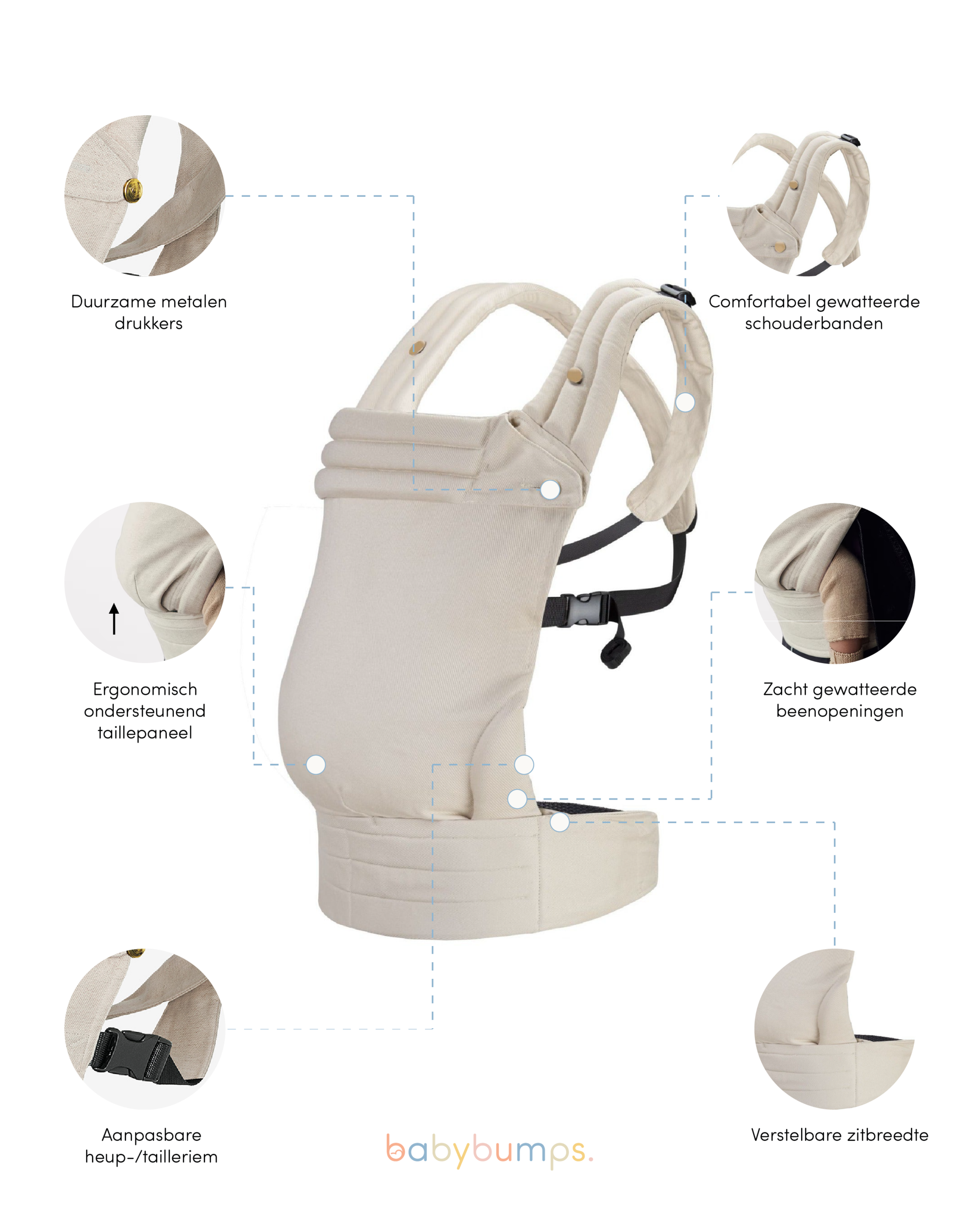 De Babybumps Draagzak combineert stijl, comfort en gebruiksgemak voor zowel ouder als kind.